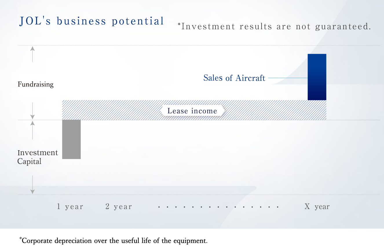 Investors earn cash dividend from the lease income during the lease term and capital gains when selling the target property on the resale market at the end of the lease. Aircraft can be held by one or more companies, and leased to airlines through (SPC) unions under the Japanese Civil Code.